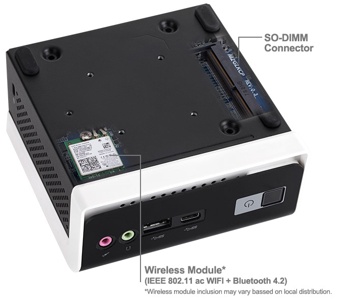 Minipočítač GIGABYTE BRIX™ je také vybaven M.2 modulem, který nabízí IEEE 802.11ac Wi-Fi připojení a nejnovější verzi rozhraní Bluetooth 4.2. Poskytuje tak možnost připojení Bluetooth zařízení a příslušenství s nízkou spotřebou energie a stejně tak uživatelům umožňuje snadno připojit mobilní zařízení.