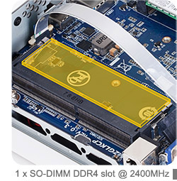 GIGABYTE BRIX je vybaven 128bitovým paměťovým řadičem, který podporuje paměti DDR4 s taktem až 2 400 MHz. DDR4 je typ synchronní dynamické paměti s náhodným přístupem, dvojitou datovou rychlostí a rozhraním s vysokou propustností. Primárními výhodami DDR4 oproti jejich předchůdci DDR3 je vyšší datová hustota modulů a nižší napětí společně s vyšší přenosovou rychlostí.