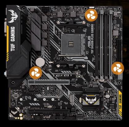 TUF B450M-PLUS GAMING je vybavená nejkomplexnějším ovládáním ventilátorů, které lze konfigurovat pomocí nástroje Fan Xpert 2+ a našeho oceněného UEFI BIOSu.