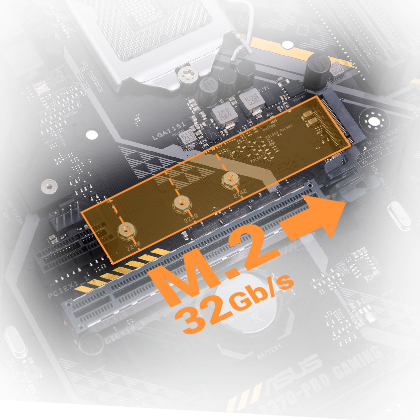 Díky šířce pásma x4 PCI Express® 3.0 podporuje M.2 rychlosti přenosu až 32 Gb/s. Je to perfektní volba pro operační systém nebo aplikační disk, takže vaše PC a aplikace pracují nejrychleji, jak to jde.