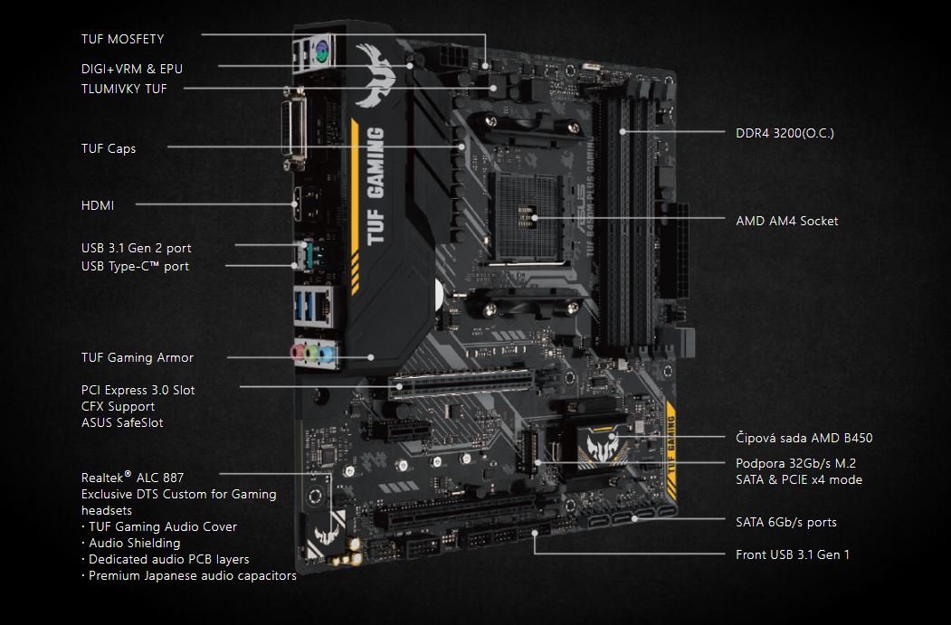 Základní desky TUF Gaming nabízejí snadné a bezpečné vlastní sestavy PC díky vynikajícímu designu, inovativnímu inženýrství a silným partnerstvím s hlavními výrobci komponentů. Bezkonkurenční kombinace komponent TUF armádní úrovně, ochrany TUF Protection a spolupráce TUF Gaming Alliance znamená, že si můžete být jisti, že vaše herní zařízení bude o krok napřed.