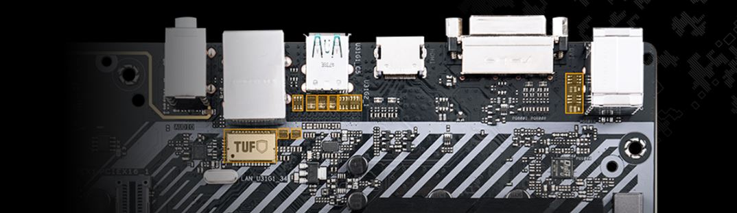 TUF LANGuard je inovace na úrovni vojenských řešení, která integruje pokročilou technologii spojování signálu a špičkové kondenzátory osazené na desce plošných spojů pro zlepšení propustnosti, ochrany základní desky před údery blesku a statickou elektřinou.
