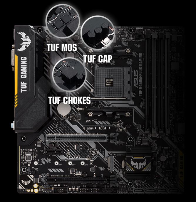 Certifikované tlumivky TUF s kvalitou vojenské úrovně poskytují CPU napájecí zdroj, který pomáhá zvyšovat stabilitu systému.