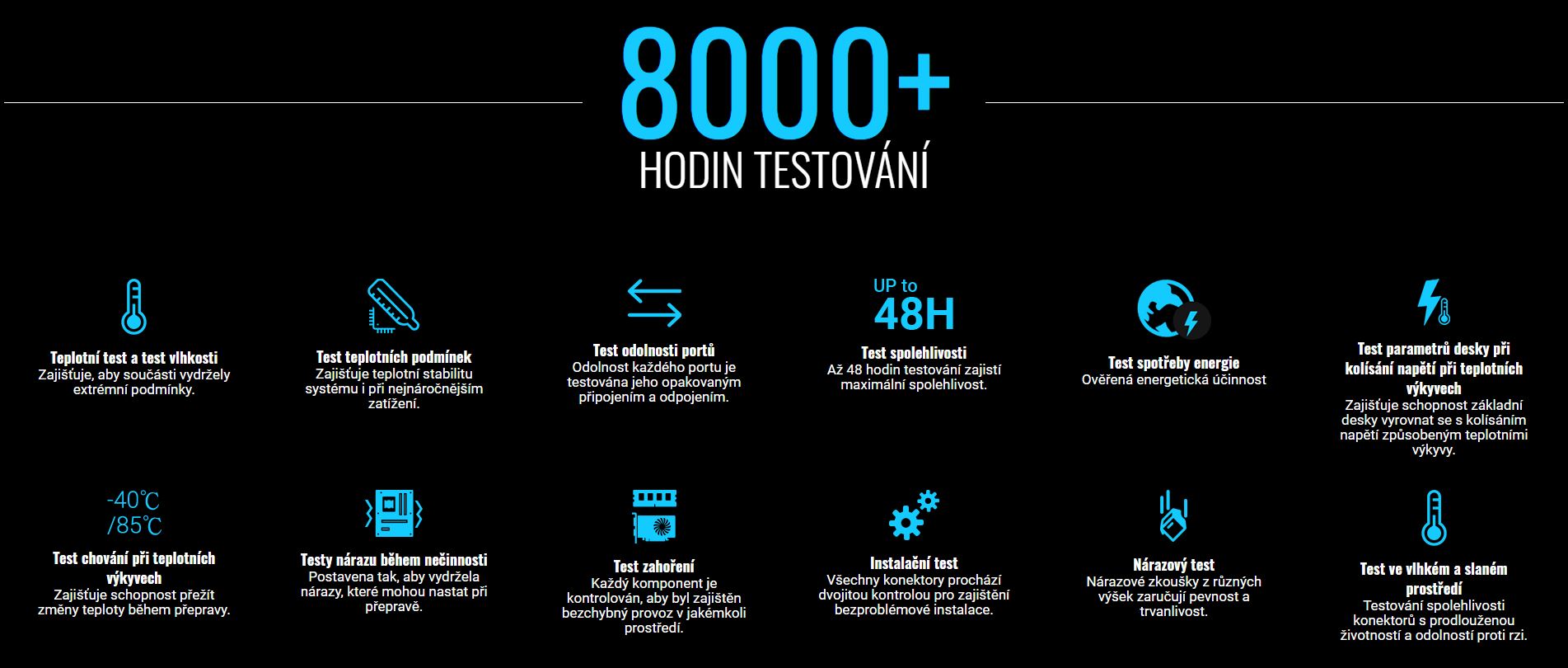 Testy zaručující kompatibilitu s více než 1000 typy procesorů, DDR4 modulů, grafických karet a dalších komponent