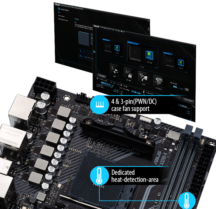 Základní desky řady A320 nabízejí komplexní kontrolu nad ventilátorem šasi pomocí přiloženého softwaru Fan Xpert 2. Režim automatického ladění inteligentně konfiguruje všechny parametry jediným kliknutím.