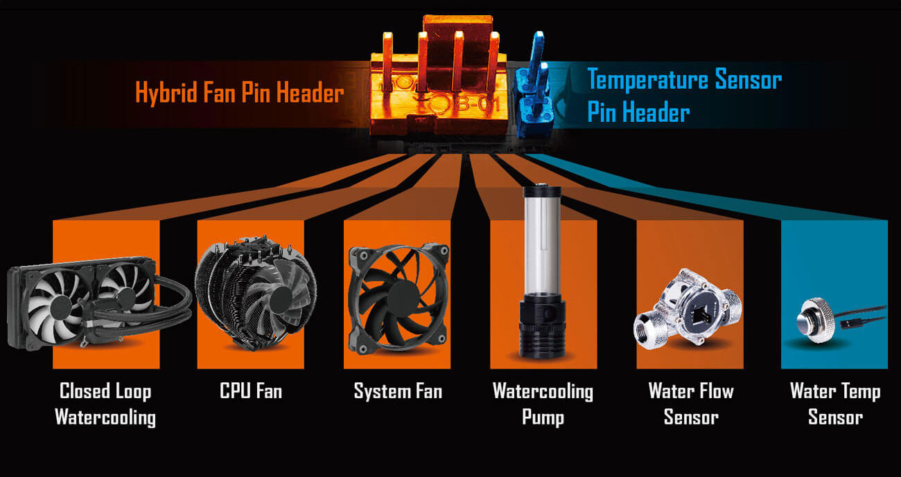 S nástrojem Smart Fan 5 si mohou být uživatelé jisti, že si jejich herní počítač vždy zachová svůj vysoký výkon a zůstane přitom dostatečně chlazený. Smart Fan 5 uživatelům umožňuje výměnu jejich konektorů pro ventilátory pro zohlednění rozdílného vlivu teplotních senzorů na různých místech základní desky. A nejen to, se Smart Fan 5 mají k dispozici více hybridních konektorů pro ventilátory, které podporují jak regulaci pomocí napětí, tak PWM, aby si základní deska lépe rozuměla s vodním chlazením.