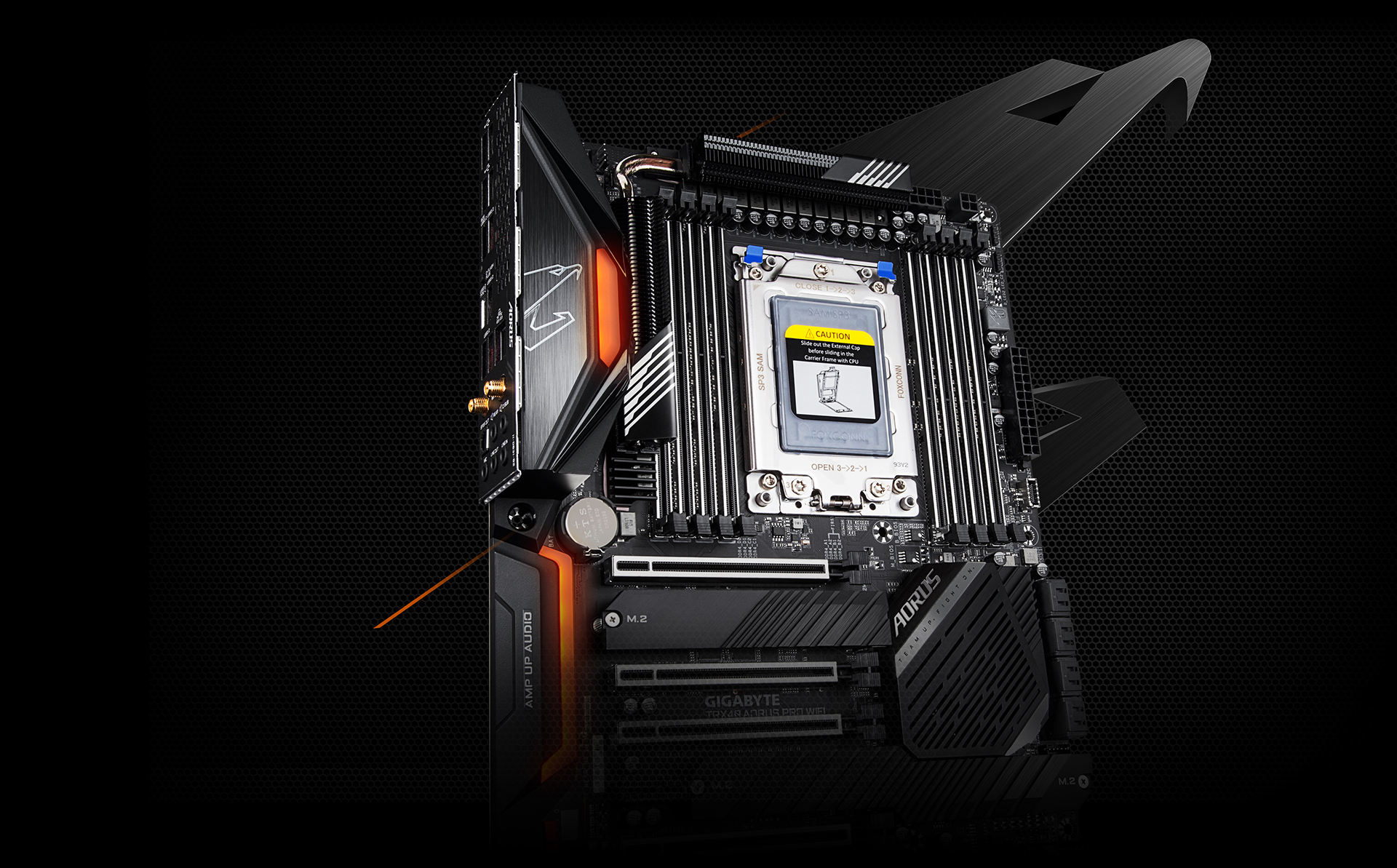 TRX40 AORUS PRO WIFI je vybavena RGB FUSION 2.0 a nabízí uživatelům možnost ovládat vestavěné, externí světelné pásky nebo zařízení AORUS pomocí RGB/adresovatelných RGB LED, aby byl jejich počítač jedinečný a stylovější.