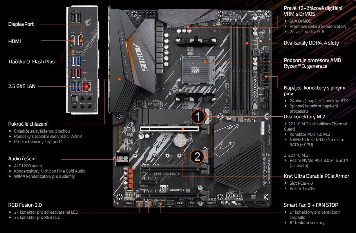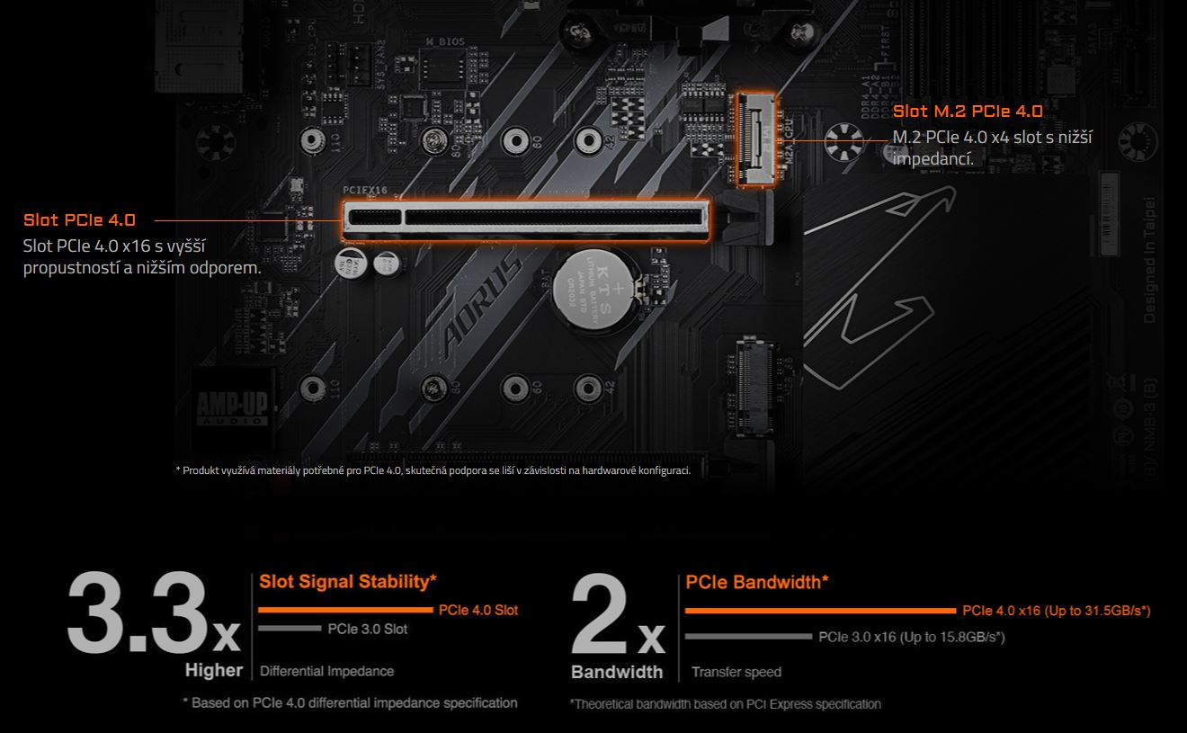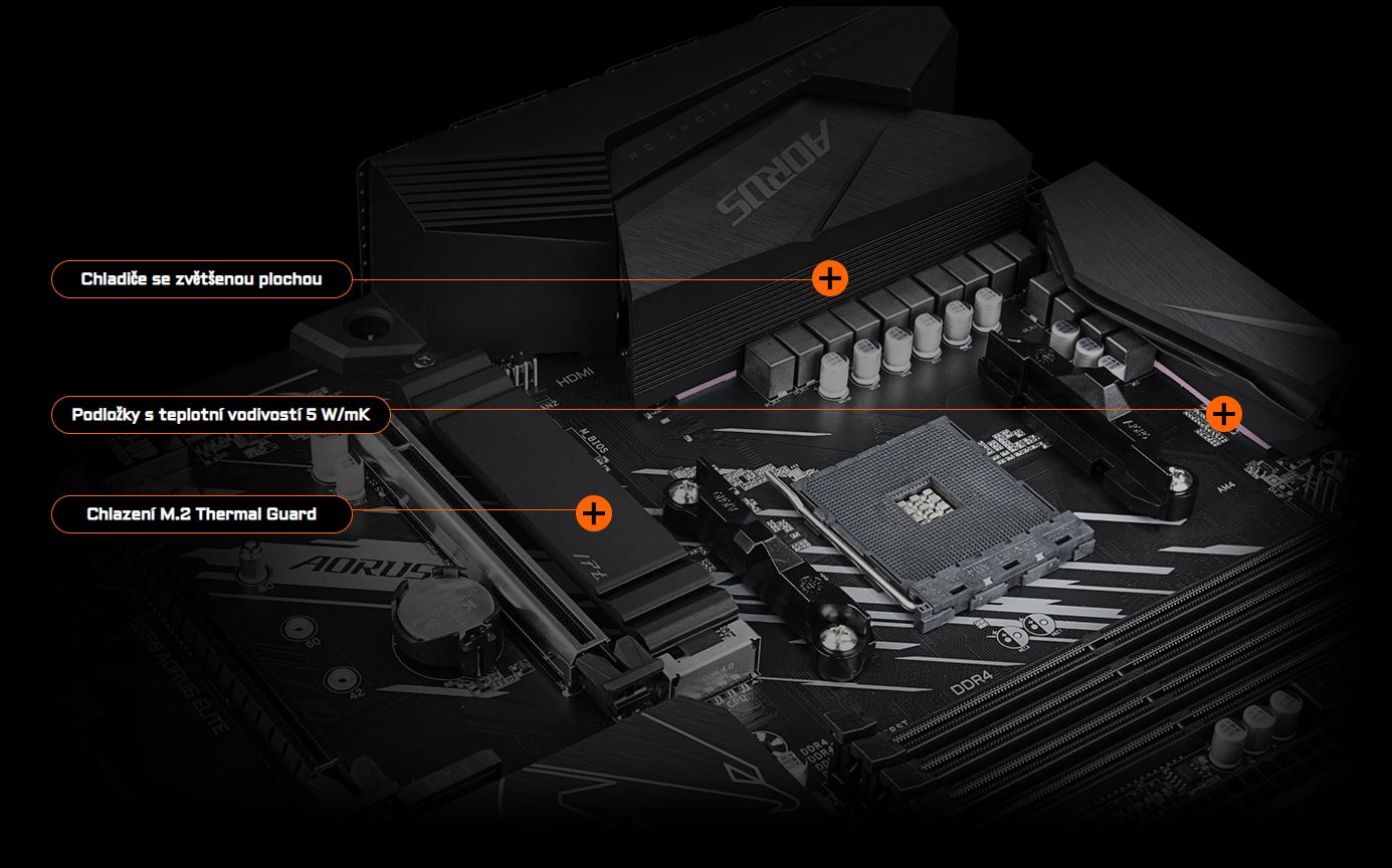 GIGABYTE si uvědomuje, že se zákazníci nepřestanou hnát za vyšším výpočetním výkonem. Staráme se o to, aby jej naše produkty umožňovaly. Chráněné a optimalizované trasy k pamětem zvyšují výkon. Pro úsporu času a zvýšení efektivity je zapotřebí rychlejší čtení a zápis. Podporujeme množství úložných zařízení pro M.2 chráněných proti zahřívání pro zajištění neomezované rychlosti čtení a zápisu. Díky využití komponent připravených pro PCIe 4.0 je navíc upgrade základních desek s B550 snazší.
