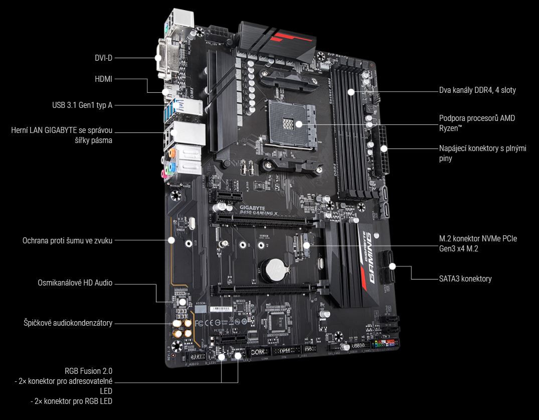 Základní desky GIGABYTE AM4 jsou připraveny na podporu nejnovějších procesorů AMD Ryzen™ 3000 a jsou zpětně kompatibilní s procesory AMD Ryzen™ 2000 a 1000. Díky bohatým seznamem funkcí na základních deskách GIGABYTE AM4, jako je například Ultra Durable™ Armor pro PCIe/paměťové sloty, rozhraní USB typ C™ na vybraných deskách, špičková kvalita zvuku, vysokorychlostní ethernet a nejnovější Wi-Fi standard jsou základní desky GIGABYTE AM4 ideální pro uživatele, kteří chtějí stavět nejlepší sestavy na platformě AMD.
