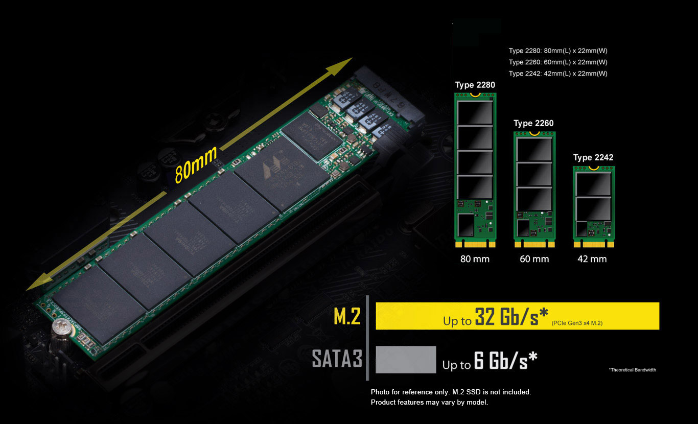 Řešení GIGABYTE M.2 nabízí podstatně rychlejší výkon úložiště a podporu pro rozhraní PCIe i SATA* pro M.2 SSD.