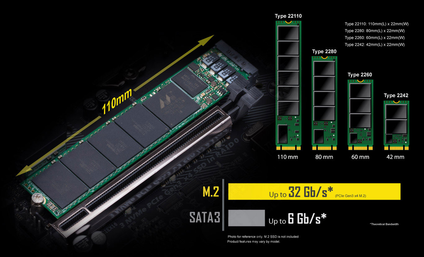 Řešení GIGABYTE M.2 nabízí podstatně rychlejší výkon úložiště a podporu pro rozhraní PCIe i SATA* pro M.2 SSD.