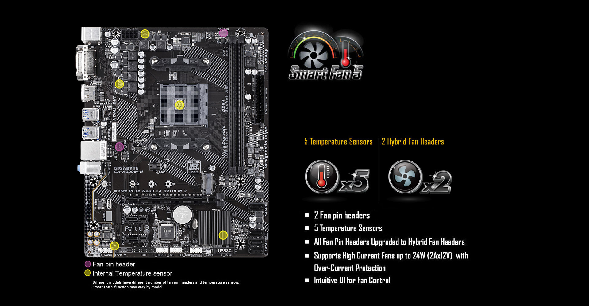 S nástrojem Smart Fan 5 si mohou být uživatelé jisti, že si jejich herní počítač vždy zachová svůj vysoký výkon a zůstane přitom dostatečně chlazený. Smart Fan 5 uživatelům umožňuje výměnu jejich konektorů pro ventilátory pro zohlednění rozdílného vlivu teplotních senzorů na různých místech základní desky. A nejen to, se Smart Fan 5 mají k dispozici více hybridních konektorů pro ventilátory, které podporují jak regulaci pomocí napětí, tak PWM, aby si základní deska lépe rozuměla s vodním chlazením.