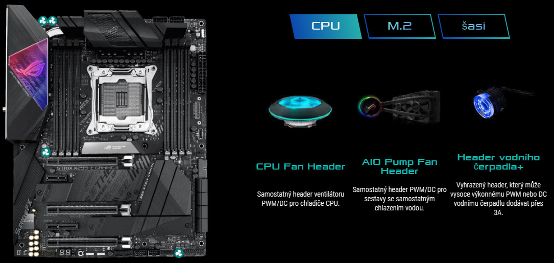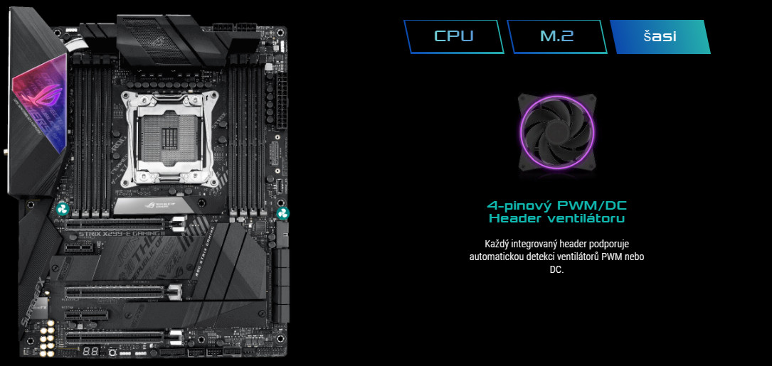 Řada ROG Strix X299-E Gaming II nabízí nejkomplexnější možnosti chlazení, které lze kdykoliv konfigurovat pomocí Fan Xpert 4 nebo UEFI BIOS