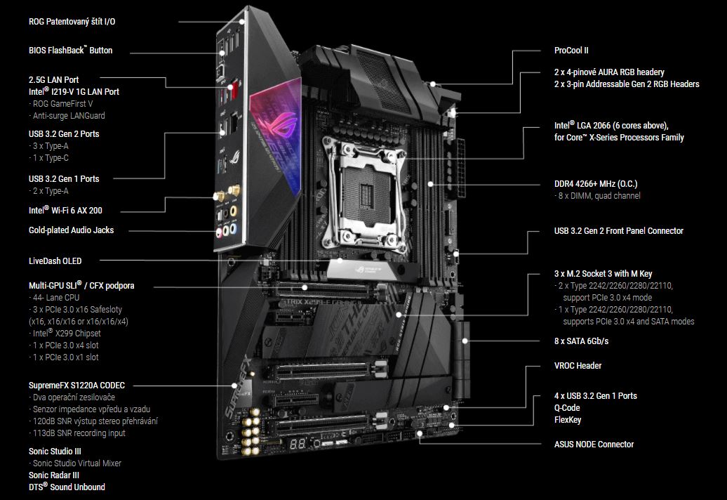 ROG Strix X299-E Gaming II je zkonstruována s nejnovější konektivitou pro nejlepší herní zážitky. Přenášejte soubory rychleji a eliminujte zpoždění. Vítězství tak máte ve svých rukou.