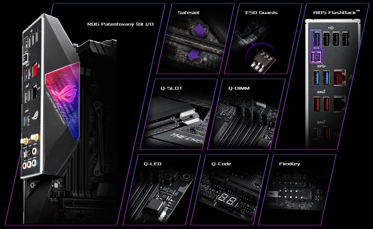 Řada designových prvků, včetně unikátního futuristického písma a možností přizpůsobení, rozsáhlých seznamů validace a nejrozsáhlejšího ekosystému komponentů ve svém odvětví, společně usnadňují tvorbu a personalizaci herní sestavy postavené na ROG Strix X299-E Gaming II.