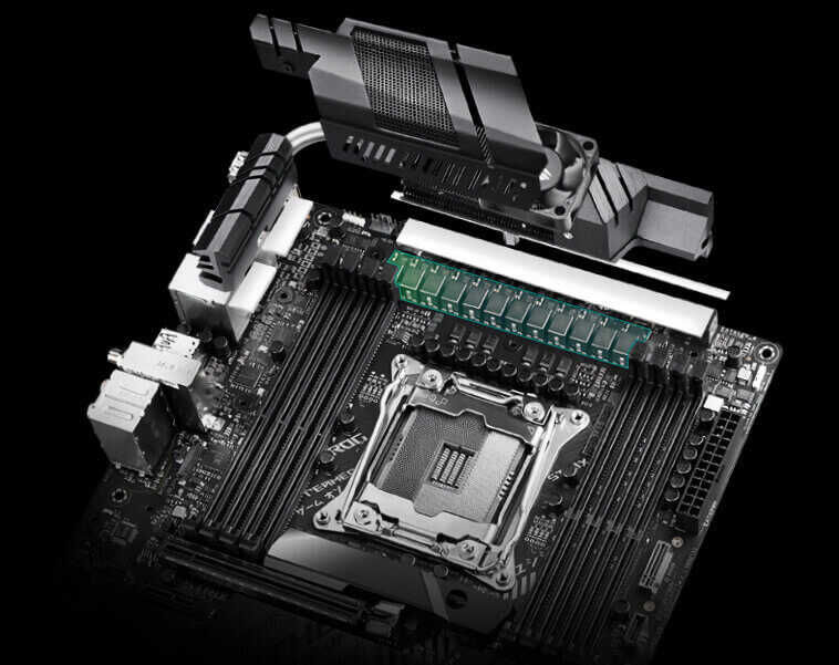 ROG Strix X299-E Gaming II používá účinné tlumivky a vysoce kvalitní tepelné podložky, které pomáhají přenášet teplo z induktoru a fázového pole na chladič s dostatečnou plochou povrchu pro chladící výkon potřebný pro nejnovější procesory.