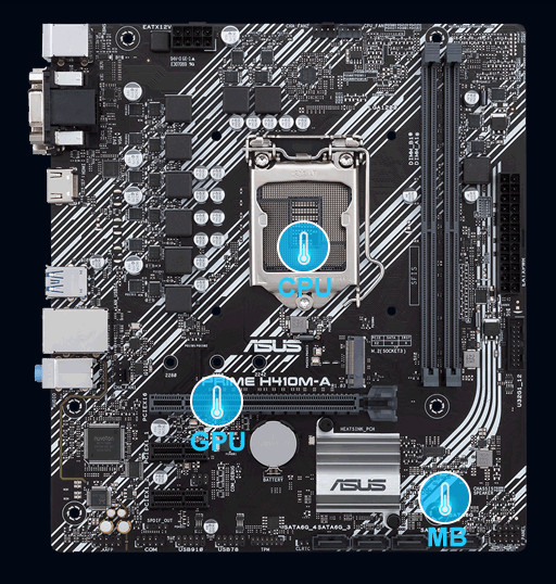 Řada Prime H410 obsahuje komplexní ovládací prvky chlazení, které lze konfigurovat pomocí softwaru Fan Xpert 2+ nebo prostřednictvím systému UEFI BIOS.