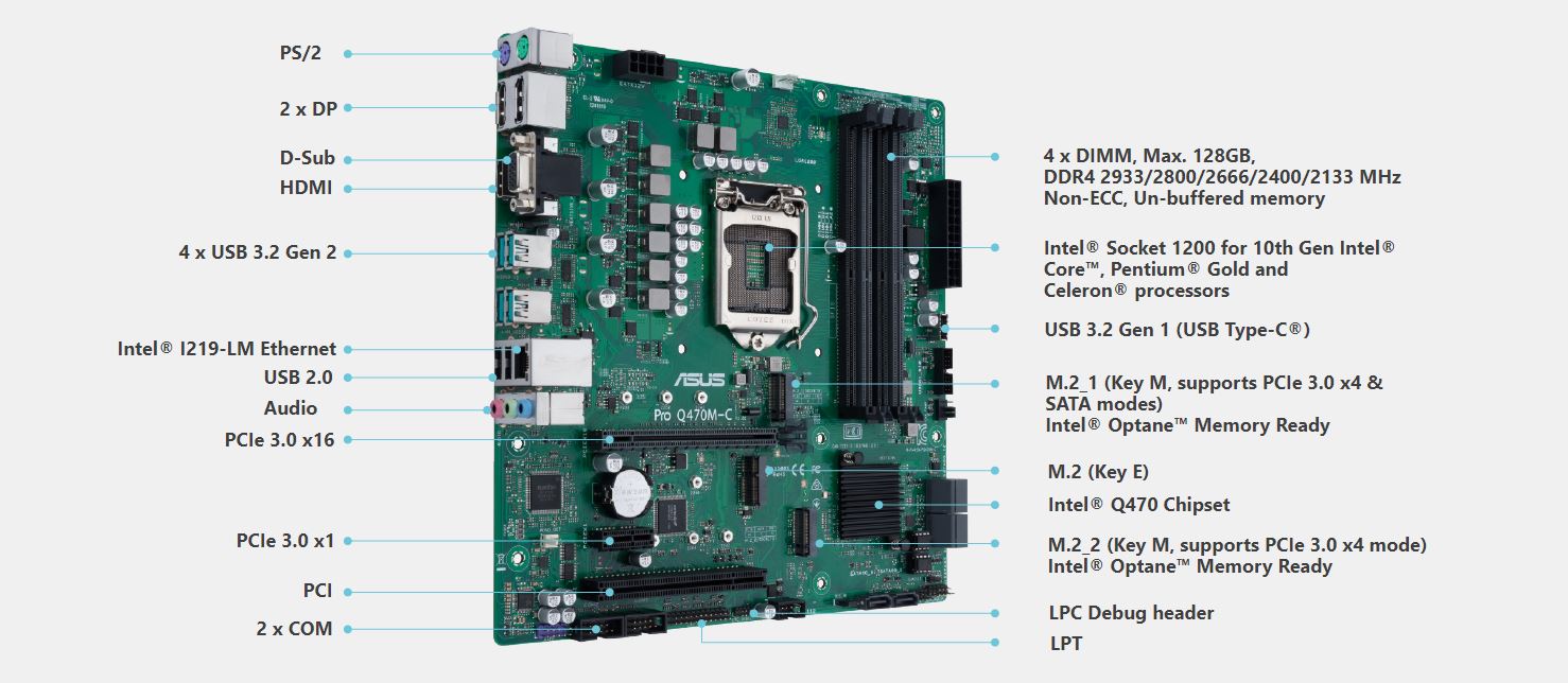 Základní desky ASUS Pro poskytují vylepšené funkce pro hladký provoz IT, včetně komplexní ochrany systému, stability, absolutní spolehlivosti a zdokonalené sady pro snadnější přizpůsobení. Společnost ASUS, známá jako největší a nejznámější značka základních desek na světě, poskytuje prvotřídní poprodejní servis a garantuje dlouhodobou dostupnost pro maximalizaci investic do vysoce kvalitního řešení optimalizovaného pro TCO pro výpočetní potřeby vašeho podnikání.