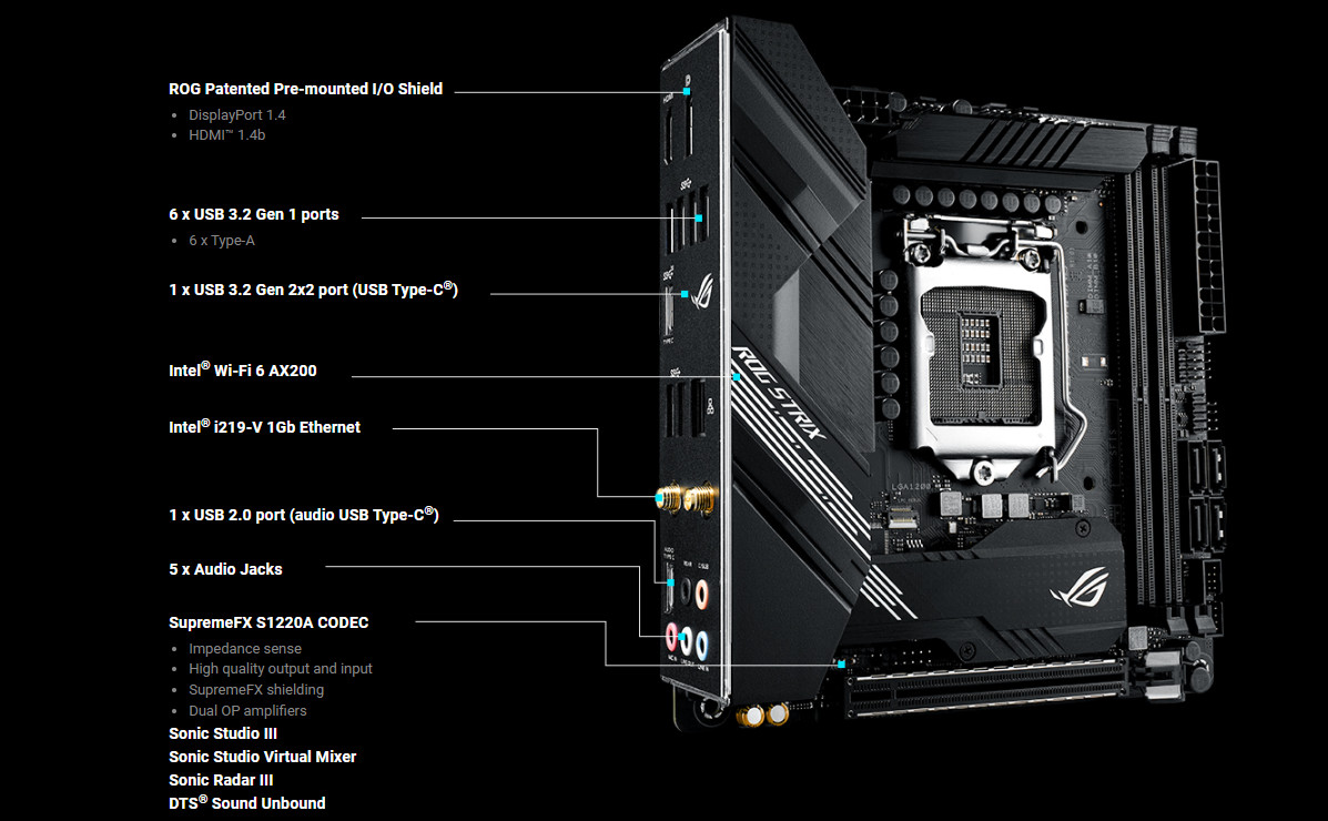 ROG Strix B460-I Gaming vám poskytuje nejnovější možnosti připojení pro superhladké online zážitky a bleskově rychlé přenosy souborů. Špičkový zvukový výkon vám poskytuje obrovskou výhodu, která vám umožní zachytit i ty nejmenší zvukové podněty pro zcela pohlcující herní zážitek.