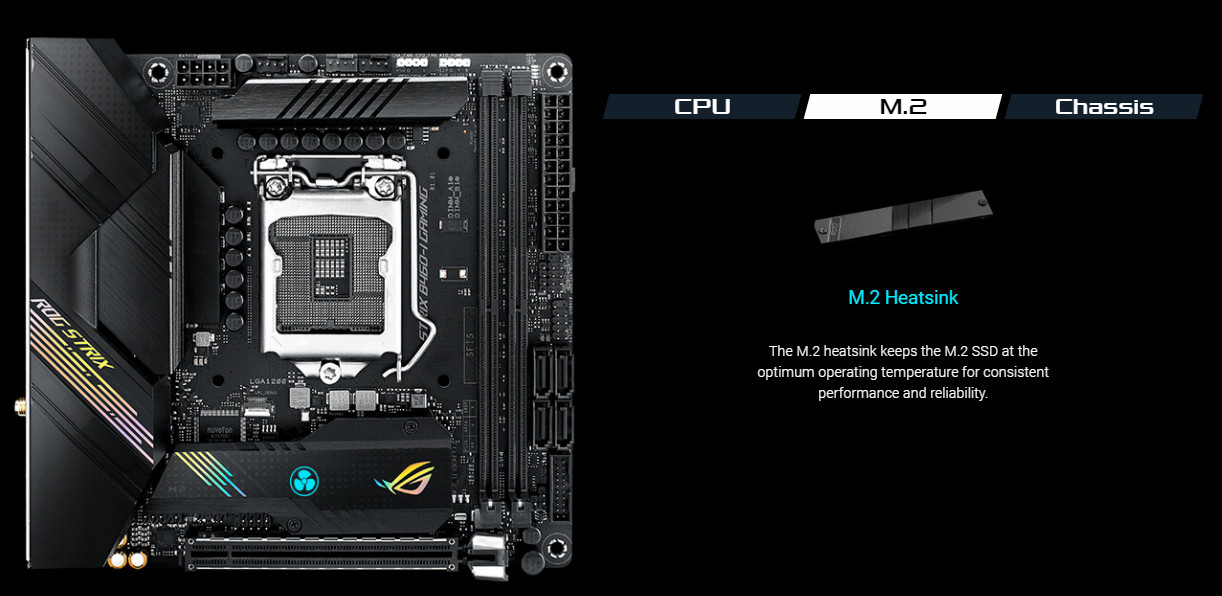 ROG Strix B460-I Gaming poskytuje robustní napájení, komplexní chlazení a podporu pro rychlejší paměť - takže má vše, co potřebujete k nastartování vaší sestavy s vysoce výkonnými součástmi pro hru ve velké lize.