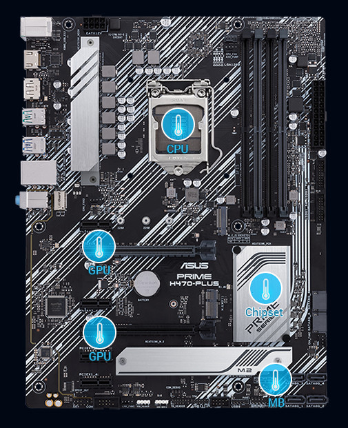 Řada Prime H470 je zkonstruována s několika zabudovanými chladiči a řadou hybridních headerů ventilátoru, aby vaše souprava zůstala chladná a stabilní i při intenzivním pracovním zatížení.