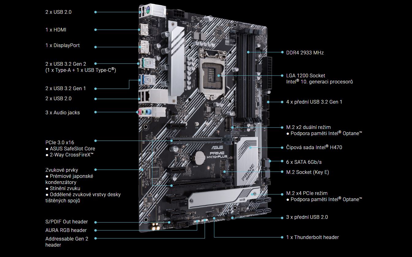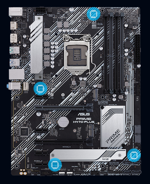 Řada ASUS Prime je odborně navržena tak, aby využila plný potenciál procesorů Intel® Core™ 10. generace. Základní desky řady H470 se vyznačují robustní konstrukcí napájení, komplexními řešeními chlazení a inteligentními možnostmi ladění a poskytují každodenním uživatelům a stavitelům vlastních PC řadu možností ladění výkonu prostřednictvím přiloženého softwaru a hardwaru.