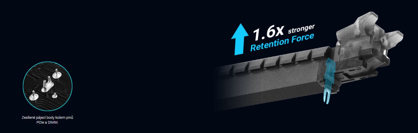 Exkluzivní ASUS SafeSlot Core je slot pro PCIe, který je vybaven zesílenou konstrukcí, který je ukotven k základní desce speciálním upevněním. Safeslot Core poskytuje 1,6x pevnější připevnění a 1,3x větší odolnost ve střihu než standardní rozšiřující sloty.