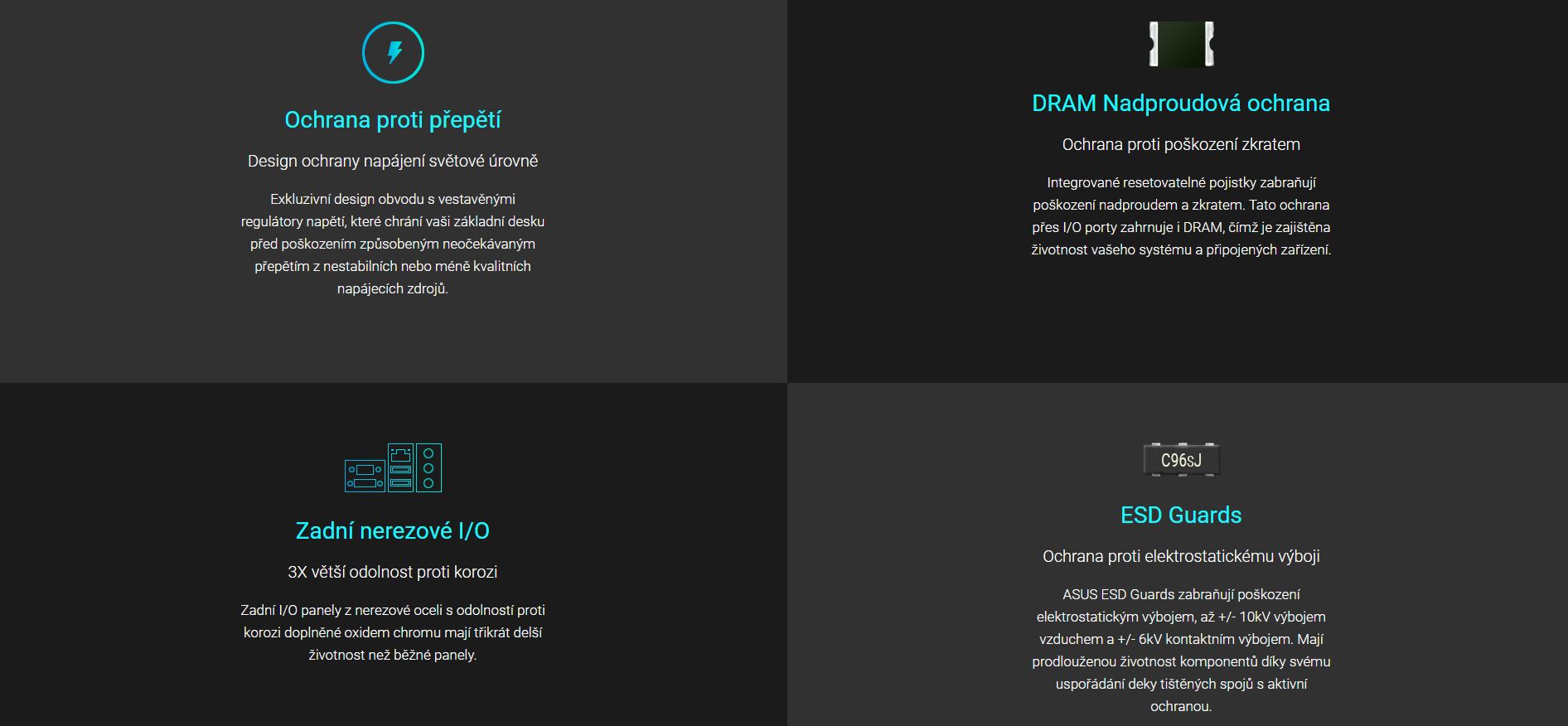 Každá základní deska ASUS je podrobena více než 8 000 hodin přísných testů, včetně testů zahoření, v náročném prostředí, testu kompatibility, softwaru a bezpečnosti, aby byla potvrzena jejich životnost. Spolehlivost ASUS překonává průmyslové standardy a zajišťuje, že každý komponent je navržen tak, aby bezchybně fungoval v jakémkoli prostředí.