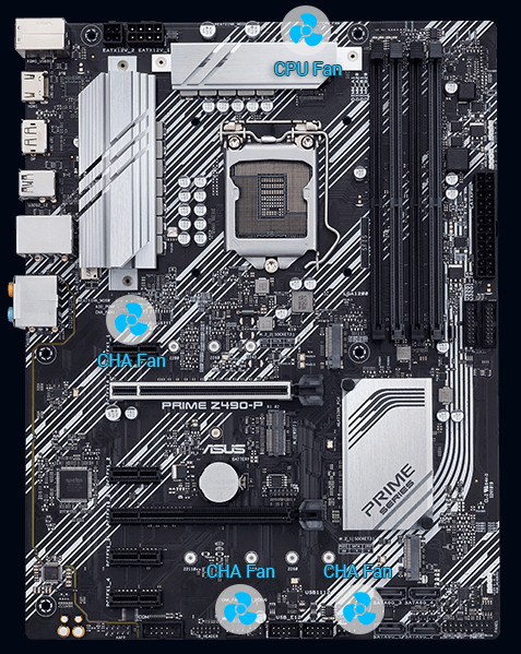 Řada Prime Z490 obsahuje komplexní ovládací prvky chlazení, které lze konfigurovat pomocí softwaru Fan Xpert 2+ nebo prostřednictvím systému UEFI BIOS.