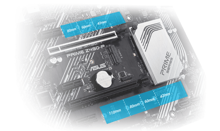 Slot M.2 (typ 22110) podporuje rychlosti přenosu dat až 32 Gbps přes x4 PCI Express® 3.0, což umožňuje rychlejší spouštění a načítání aplikací s OS nebo aplikačními jednotkami.