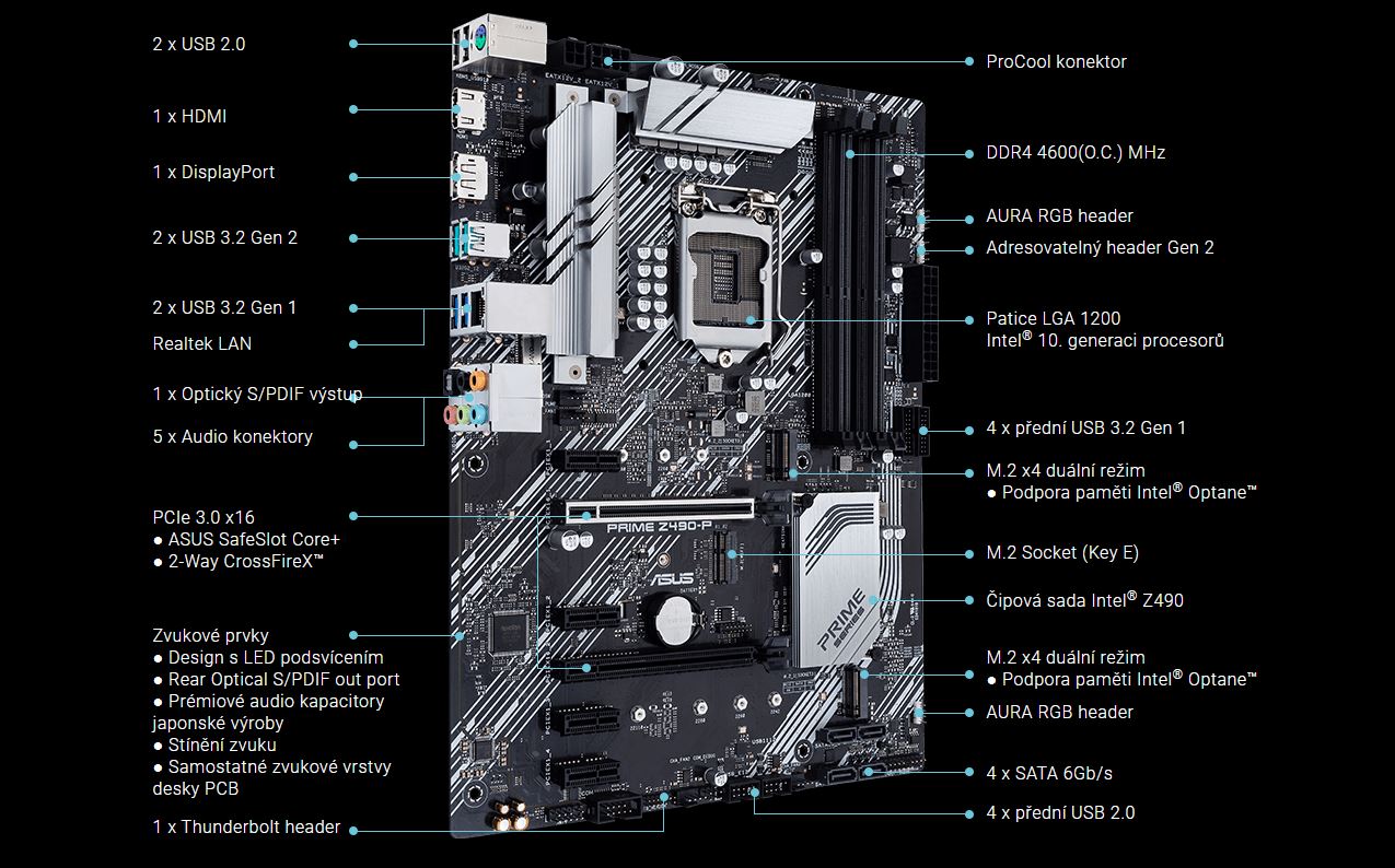 Řada ASUS Prime je odborně navržena tak, aby využila plný potenciál procesorů Intel® Core™ 10. generace. Základní desky řady Z490 se vyznačují robustní konstrukcí napájení, komplexními řešeními chlazení a inteligentními možnostmi ladění a poskytují každodenním uživatelům a stavitelům vlastních PC řadu možností ladění výkonu prostřednictvím přiloženého softwaru a hardwaru.