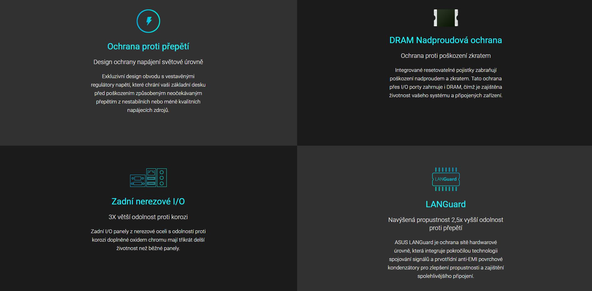 Každá základní deska ASUS je podrobena více než 8 000 hodin přísných testů, včetně testů zahoření, v náročném prostředí, testu kompatibility, softwaru a bezpečnosti, aby byla potvrzena jejich životnost. Spolehlivost ASUS překonává průmyslové standardy a zajišťuje, že každý komponent je navržen tak, aby bezchybně fungoval v jakémkoli prostředí.