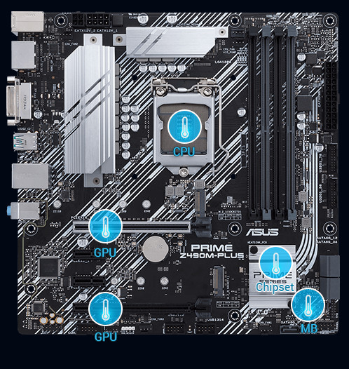 Řada Prime Z490 je zkonstruována s několika zabudovanými chladiči a řadou hybridních headerů ventilátoru, aby vaše souprava zůstala chladná a stabilní i při intenzivním pracovním zatížení.