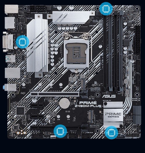 Základem série ASUS Prime jsou komplexní ovládací prvky. Základní deska Prime Z490 obsahuje flexibilní nástroje pro vyladění všech aspektů vašeho systému, což vám umožní vyladit nastavení výkonu tak, aby dokonale odpovídalo vašemu způsobu práce, čímž plně maximalizuje vaši produktivitu.