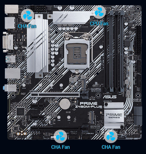 Řada Prime Z490 obsahuje komplexní ovládací prvky chlazení, které lze konfigurovat pomocí softwaru Fan Xpert 2+ nebo prostřednictvím systému UEFI BIOS.