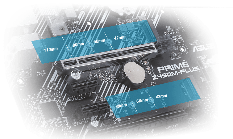 Dva sloty M.2 podporují rychlosti přenosů dat až 32 Gbps pomocí šířky pásma x4 PCI Express® 3.0, umožňuje rychlejší spouštění a načítání aplikací pomocí OS nebo aplikačních jednotek.