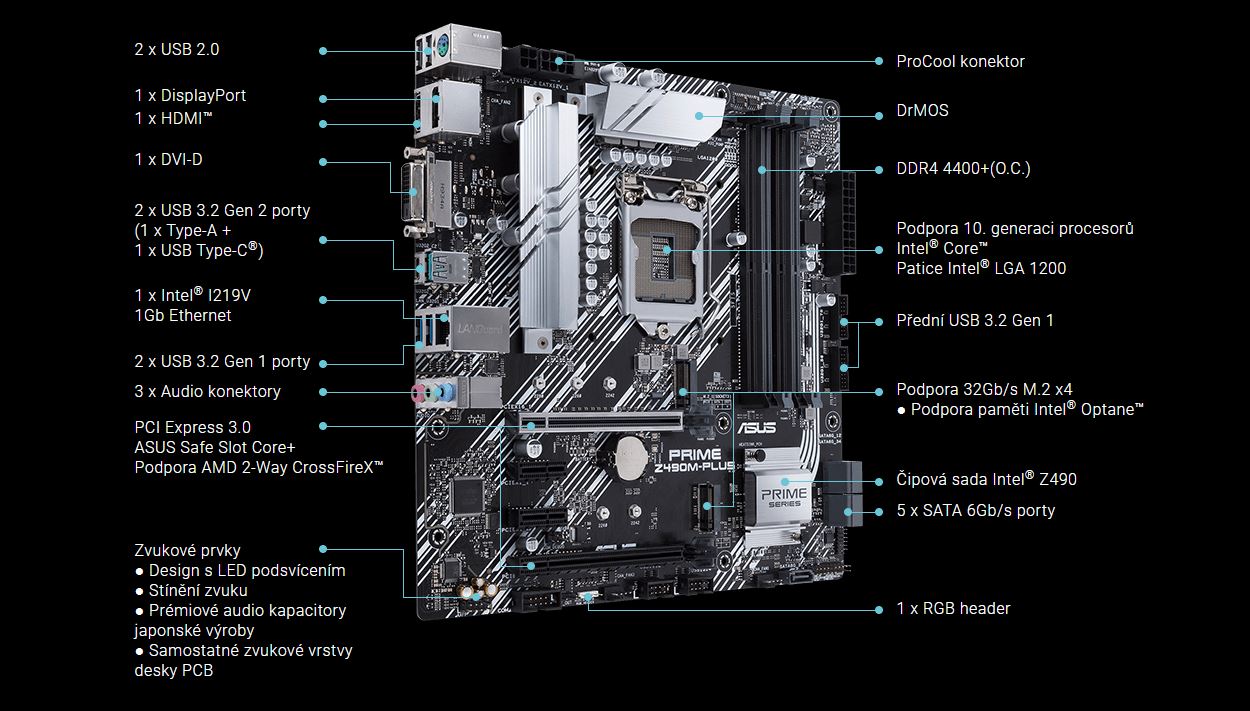 Řada ASUS Prime je odborně navržena tak, aby dokázala využít plný potenciál procesorů Intel® Core™ 10. generace. Základní desky řady Z490 se vyznačují robustním designem napájení, komplexními řešeními chlazení a inteligentními možnostmi ladění a poskytují každodenním uživatelům a stavitelům vlastních sestav řadu možností ladění výkonu prostřednictvím intuitivního softwaru a funkcí firmwaru.
