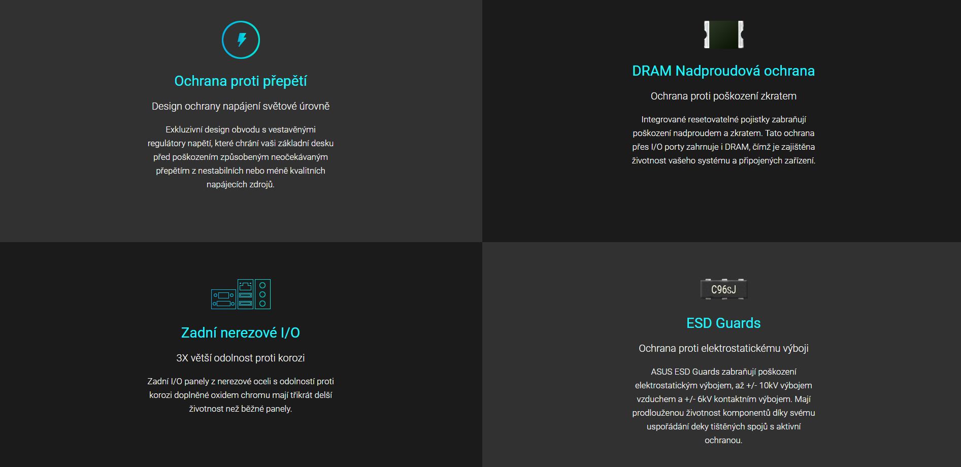 Každá základní deska ASUS je podrobena více než 8 000 hodin přísných testů, včetně testů zahoření, v náročném prostředí, testu kompatibility, softwaru a bezpečnosti, aby byla potvrzena jejich životnost. Spolehlivost ASUS překonává průmyslové standardy a zajišťuje, že každý komponent je navržen tak, aby bezchybně fungoval v jakémkoli prostředí.