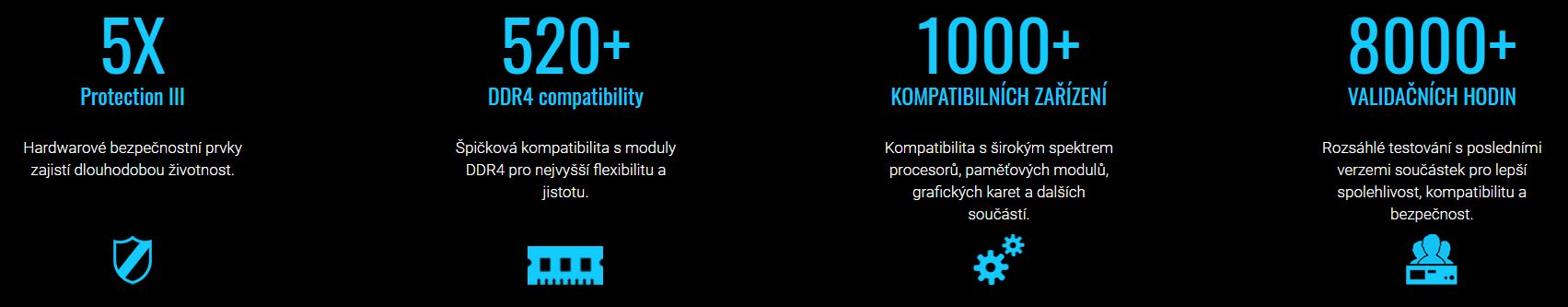 Společnost ASUS je přední světovou značkou ve výrobě základních desek. Naše základní desky jsou podrobně testovány na kompatibilitu s více než 1000 součástkami a zařízeními a každý nový model prochází minimálně 8 000 hodin přísné kontroly — svým zákazníkům tak nabízíme klid a vědomí, že základní deska ASUS je vhodná pro všechna prostředí a aplikace. Výběr značky ASUS je zárukou bezproblémových uživatelských zkušeností s vlastními sestavami.