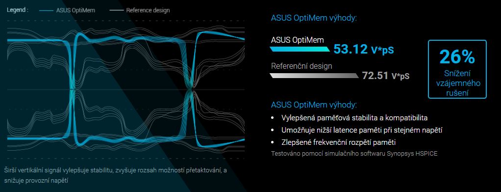 ASUS OptiMem zachová integritu paměťového signálu směrováním stop a průchodů do optimální vrstvy PCB a nástroj rozvržení trasování T-Topology zajišťuje časově sjednocené signály díky vyvážení délek stop mezi paměťovými sloty. Tato vylepšení umožňují základním deskám Prime 300 podporovat širokou škálu paměťových sad s duální a čtyř-DIMM pamětí a současně poskytují vašemu vybavení stabilitu, kterou potřebuje k jakémukoli typu pracovního zatížení – ať už hrajete nebo používáte výpočetně náročné aplikace.