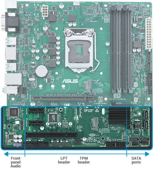ASUS Debug header je LPC header pro připojení k debug kartám pro rychlejší a efektivnější řešení problémů spojených se základní deskou. Při připojení k debug kartě ASUS mohou administrátoři na integrovaném LCD displeji zobrazit kódy chyb a získat tak lepší představu o procesech inicializace a obnovy. Základní desky společnosti ASUS poskytují kompletní řešení pro řešení potíží, čímž se zrychluje a zefektivňuje správa IT.