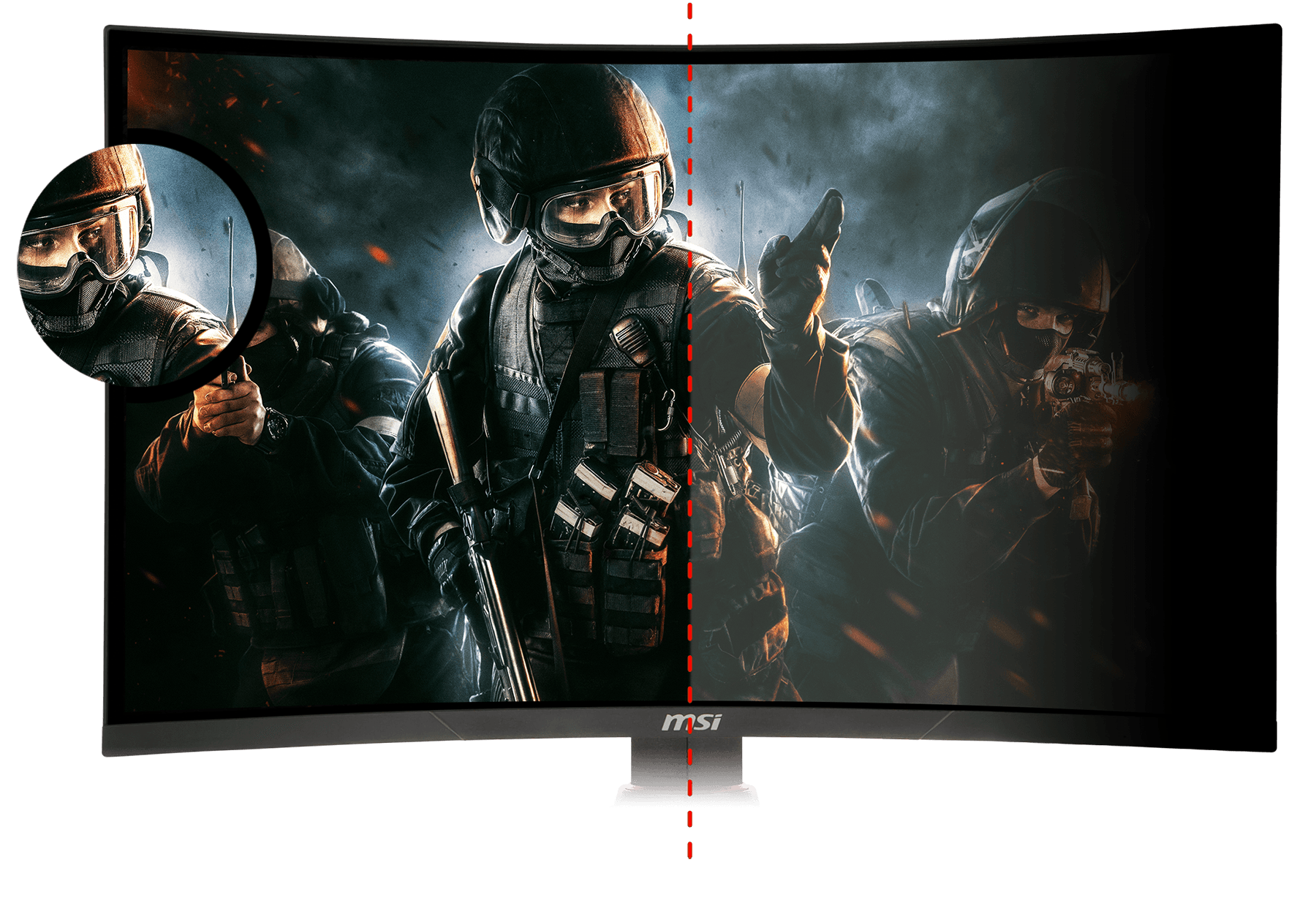 Herní monitory MSI používají zakřivený panel displeje s poloměrem 1800R, což je nejpohodlnější a nejvhodnější pro širokou škálu aplikací od obecné práce s PC až po hry. Zakřivené panely pomáhají maximálně se ponořit do hry.