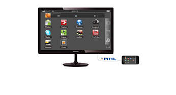 MHL (Mobile High Definition Link neboli mobilní propojení s vysokým rozlišením) je mobilní rozhraní pro audio/video, jež slouží k přímému připojení mobilních telefonů a dalších přenosných zařízení k displejům s vysokým rozlišením. Volitelný kabel MHL umožňuje snadné připojení mobilního zařízení podporujícího technologii MHL k tomuto velkému displeji Philips MHL: poté můžete sledovat, jak vaše videa ve vysokém rozlišení ožijí s plně digitálním zvukem. Nejen že si nyní můžete vychutnat své mobilní hry, fotografie, filmy nebo jiné aplikace na velké obrazovce – můžete zároveň i nabíjet své mobilní zařízení, takže se vám nikdy nevybije baterie během rozehrané hry.