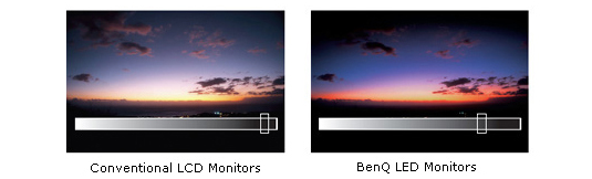 LED podsvícení nabízí ve srovnání s technologií CCFL, používanou u starších LCD monitorů, významné výhody. Tyto výhody se týkají nejen výkonových parametrů, jako je například vyšší dynamický kontrast, žádná ztráta světla a žádné blikání, ale rovněž faktorů ovlivňujících životní prostředí, jako je například proces výroby a likvidace, při kterém vzniká méně znečišťujících látek.