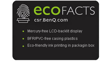 Označení ecoFACTS dokazuje, jak jsou produkty BenQ ekologické! Společnost BenQ nechce jen pasivně plnit normy pro ekologické produkty, ale chce rovněž aktivně vyvíjet produkty šetrné k životnímu prostředí! ecoFACTS prohlašuje, že BenQ vyvíjí maximální úsilí v oblastech náhrady nebezpečných látek, volby materiálu, designu obalů, energeticky úsporného designu a jiných aspektů svých produktů.