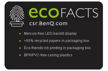 Označení ecoFACTS dokazuje, jak jsou produkty BenQ ekologické! Společnost BenQ nechce jen pasivně plnit normy pro ekologické produkty, ale chce rovněž aktivně vyvíjet produkty šetrné k životnímu prostředí! ecoFACTS prohlašuje, že BenQ vyvíjí maximální úsilí v oblastech náhrady nebezpečných látek, volby materiálu, designu obalů, energeticky úsporného designu a jiných aspektů svých produktů.