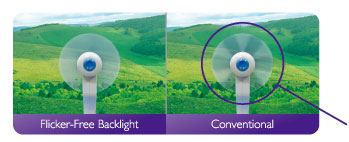 Položte před obrazovku monitoru ventilátor, abyste mohli přes otáčející se lopatky kontrolovat blikání