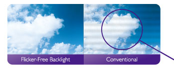GW2760HS je modernizován za účelem eliminace blikání při všech úrovních jasu, což efektivně snižuje únavu očí. Vyzkoušejte blikání vašeho počítačového monitoru: