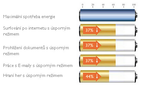 Vylepšený úsporný režim upravuje úroveň jasu podsvícení pro zajištění nejlepší kvality zobrazení při nejlepší energetické účinnosti. Tento inteligentní režim ušetří minimálně 37 % energie spotřebované při prohlížení dokumentů, surfování po internetu a práci s e-maily, a až 44 % energie spotřebované při hraní her.