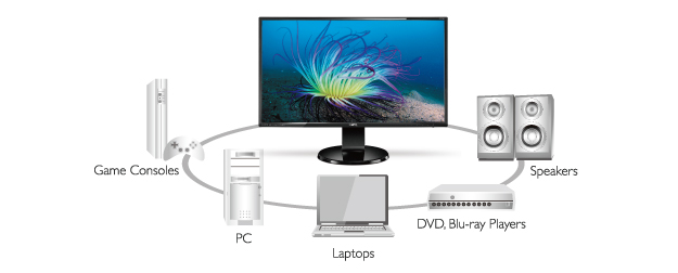 Nejnovější vysokorychlostní multimediální rozhraní* HDMI umožňuje neuvěřitelně snadné používání těchto monitorů - nyní si můžete vychutnávat digitální zábavu bez jakékoli námahy, přičemž se počítá i s budoucím připojením budoucích multimediálních zařízení.